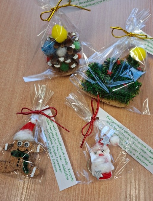 Uczestniczymy, w ramach zajęć z wychowawcą w liceum, w akcji pt.: „Dzieło Świętego Mikołaja”. Wykonaliśmy ozdoby – upominki w ramach akcji mikołajkowej z szyszek, korka ściennego i tkanin. Również zaprojektowaliśmy i wydrukowaliśmy na drukarce 3D breloczki w kształcie Mikołaja i choinek, które udekorowaliśmy. Rozwinęliśmy kreatywność, pracę w grupie, empatię i wrażliwość na potrzeby innych. Uwielbiamy takie zajęcia!