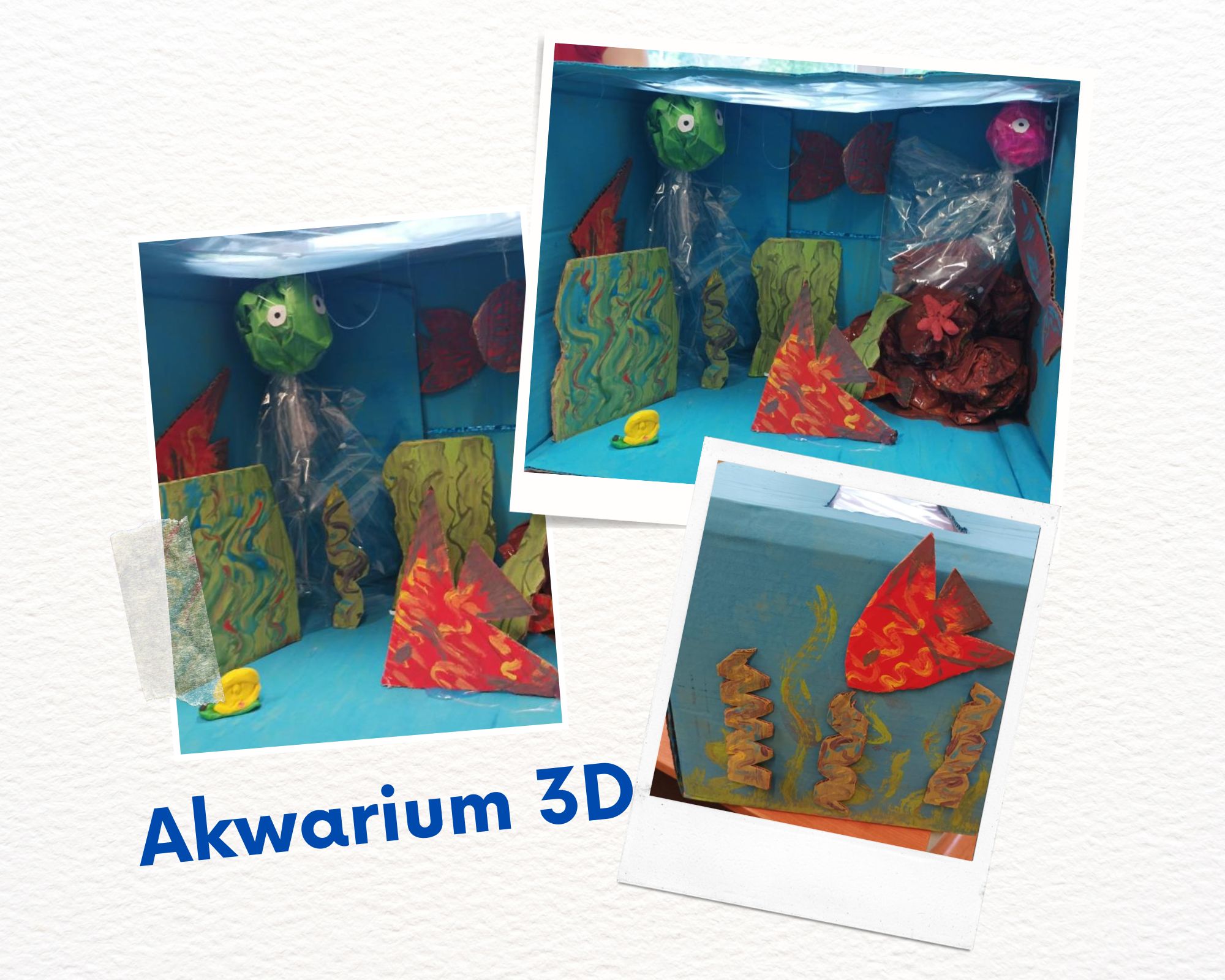 Na matematyce wykonaliśmy akwarium 3D - ryby, roślinność oraz podłoże do modelu akwarium. Jak widać, z kreatywnością jesteśmy za pan brat.