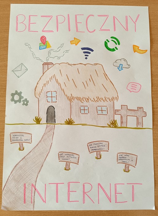 W ramach obchodów Dnia Bezpiecznego Internetu, podczas zajęć z wychowawcą w liceum, braliśmy udział w akcji Jestem bezpieczny w sieci - cyberbezpieczeństwo przede wszystkim. Wykonaliśmy plakaty, również z wykorzystaniem narzędzi cyfrowych - w szczególności programów graficznych, dotyczące bezpiecznego poruszania się w sieci.