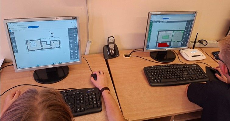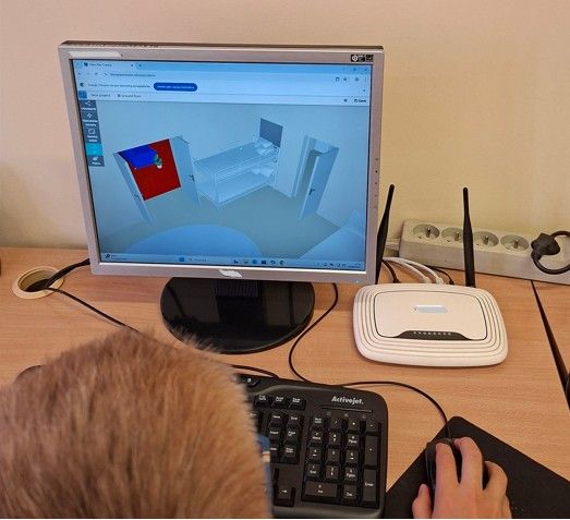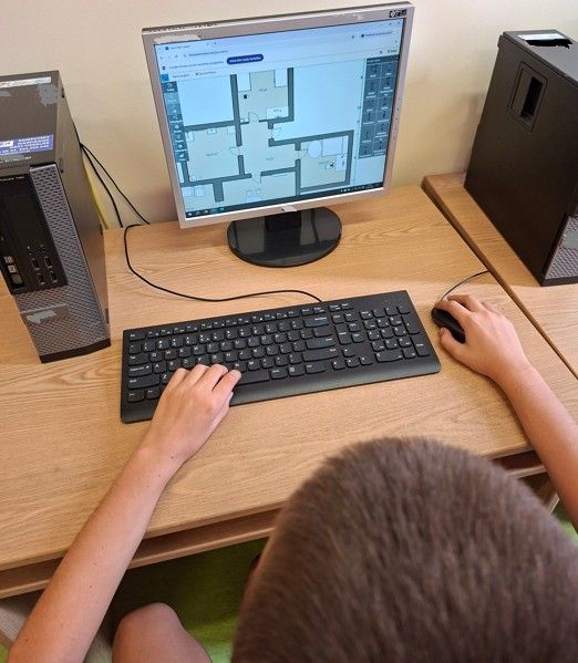 W klasie 6 na lekcji matematyki bierzemy udział w projekcie o charakterze edukacyjnym „Projektujemy pokoje, mieszkania, domy i ogrody” w ramach realizacji innowacji pt.: „Kształtowanie myślenia analitycznego, kompetencji cyfrowych i wrażliwości na potrzeby innych”. Utrwalamy w praktyce wiadomości z zakresu skali na planie, figur i brył geometrycznych, uczymy się przez praktyczne działanie. Chętnie kształtujemy kompetencje cyfrowe. Aktywnie uczestniczymy w odkrywaniu swoich mocnych stron, pasji i predyspozycji zawodowych zgodnie z potrzebami rynku pracy.