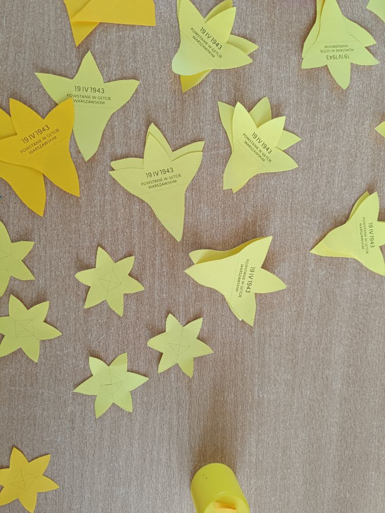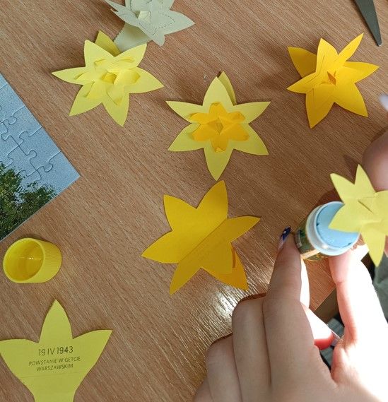 Na zajęciach z wychowawcą w klasie 1-2 liceum i 3-4 liceum wykonaliśmy żonkile z papieru przygotowując się do akcji społeczno-edukacyjnej Żonkile upamiętniającej 81 rocznicę wybuchu powstania w getcie warszawskim. Żonkil jest symbolem zbiorowej pamięci o wydarzeniach z 1943 roku. Będziemy rozdawać żonkile w szkole w dniu 19 kwietnia – w rocznicę wybuchu powstania w getcie warszawskim.