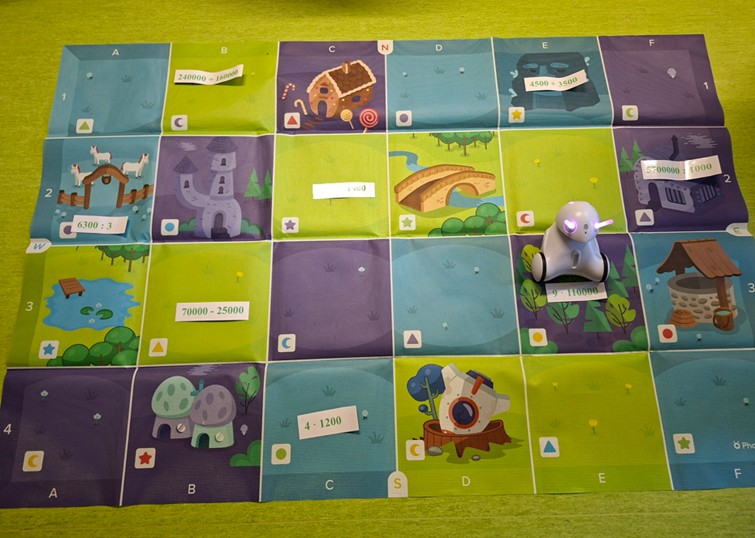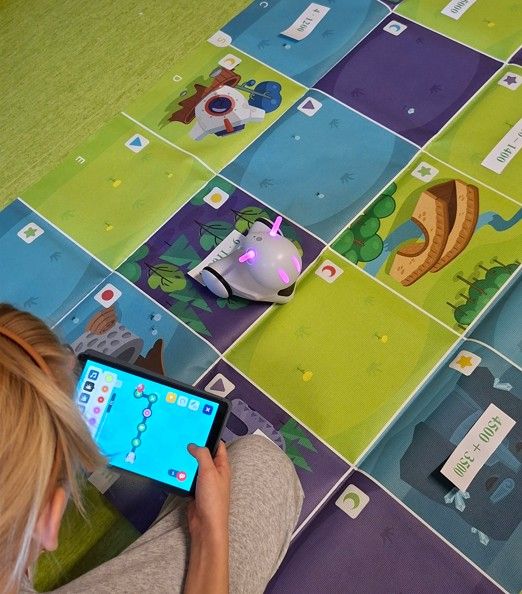 Na matematyce w klasie 4-5 chętnie braliśmy udział w warsztatach pt.: "Rachunki pamięciowe - quizy z robotem Photon zakupionym w ramach programu Laboratoria Przyszłości".